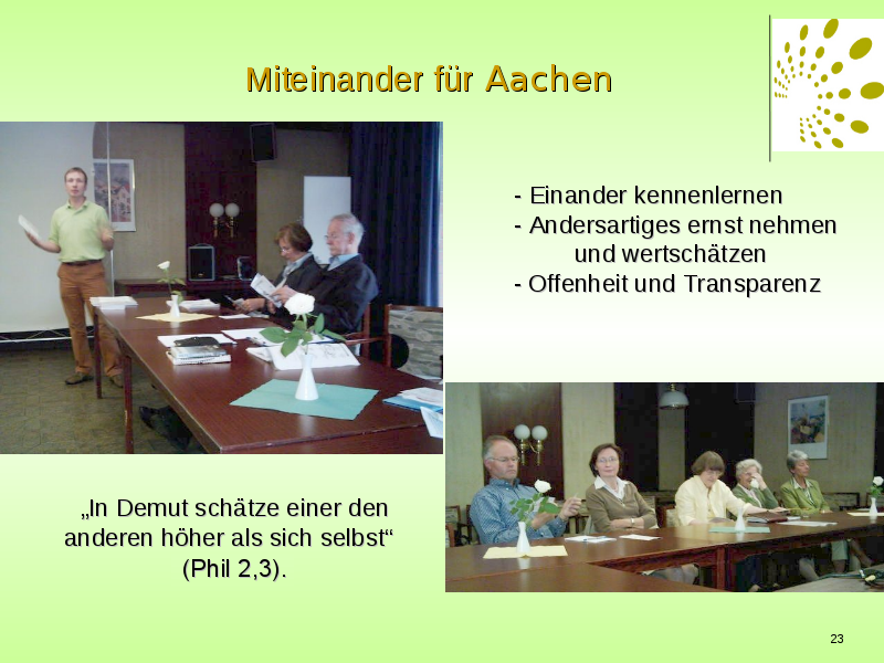In unserem Austausch lassen wir uns von Paulus führen, der der Gemeinde in Philippi schreibt: