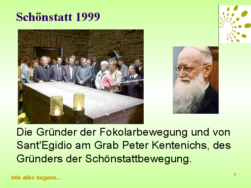 Es scheine, so sagt er, seit Pfingsten 1998 gebe es etwas in der Kirche, das wichtig sei: Eine Einheit, die von der Tiefe kommt, die belebt.